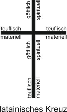 Der waagrechte Teil bezeichnet das materielle, tierische, sexuelle und teuflische.
